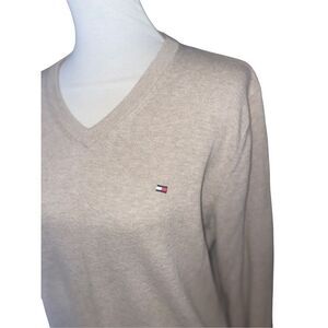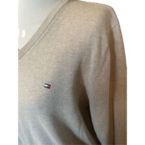 Tommy Hilfiger V-Neck Sand Colored Long Sleeve 100% Cotton Sweater Size M
