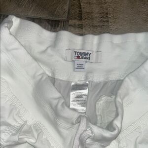 Experience the perfect blend of style and comfort with Tommy Hilfiger's white Bermuda shorts. Crafted from a lightweight material, these shorts feature a relaxed fit and a drawstring waist for easy adjustment. The clean white color and subtle pleating near the waist add a touch of sophistication, making them ideal for casual summer outings.