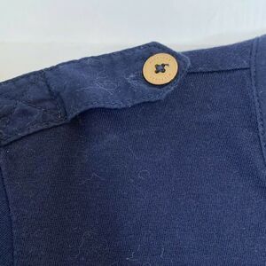 Excellent preowned condition. No noticeable signs of wear or flaws. Navy blue. Gold, logo buttons on sleeves, shoulders, and down the front. 100% cotton.