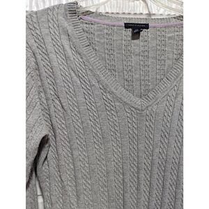 Tommy Hilfiger Women's Large Gray Classic Cable Knit V-Neck Sweater