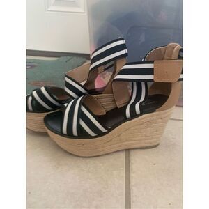 Tommy Hilfiger Womens Theia Espadrille Wedge Sandal US 7M Tan Black White. 3-3.9 inch wedge sandals.