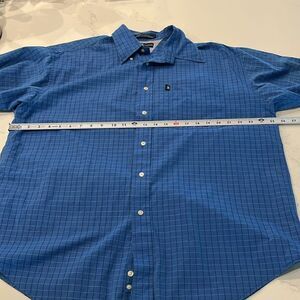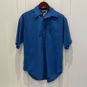 Tommy Hilfiger blue SS button front shirt, Size L. Shirt is in EUC with no rips, tears, stains or holes. Smoke and pet free home (2029*)
