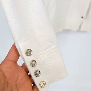 Stay cozy and stylish with this classic Tommy Hilfiger turtleneck sweater. Featuring a chic color-blocked design with navy and red stripes on a crisp white background, this sweater offers a bold yet timeless look.