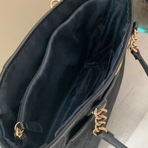 Like new. Black Tommy Hilfiger tote. Has signature print all over. 2 large pockets inside separated with a large zippered pocket.