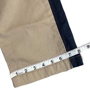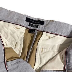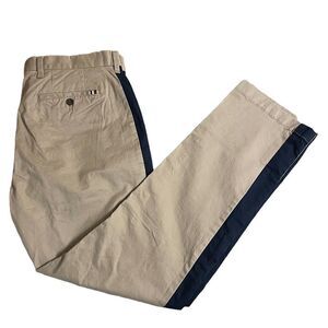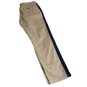 Tommy Hilfiger Vintage Camel Custom Fit Chino with navy stripe down outside of leg. Zip button fly closure.