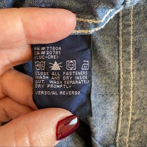 Blue denim chambray lightweight jacket from Tommy Hilfiger! This is a snap up down the front and at the wrists. Size Large.