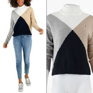 Brighten your look with this chic sweater from Tommy Hilfiger, a soft mock neck design with a vibrant diamond print.