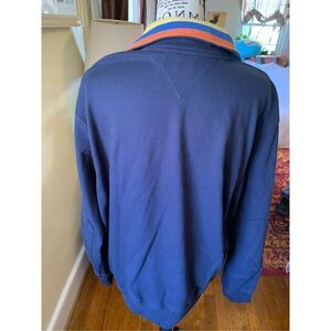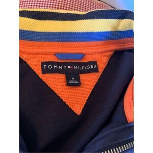 Tommy Hilfiger Navy Pullover with colorful collar and quarter zip front. Pockets. Size medium. Good condition.