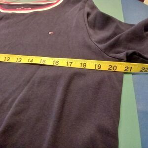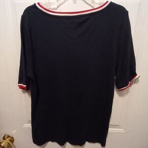 Blue shirt with red and white trim