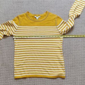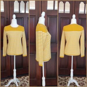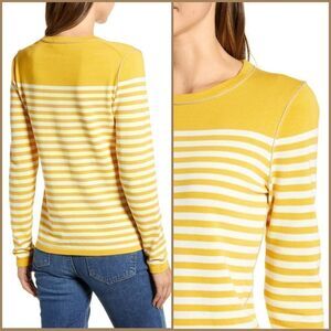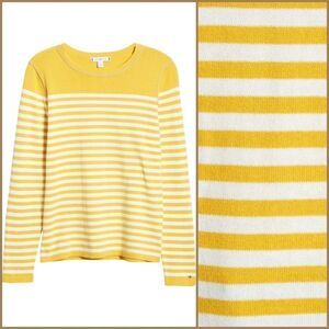 Tommy Hilfiger Stripe Crewneck Sweater. Add some shine to a chilly day in this cleverly striped cotton pullover styled with a solid yoke. Size small. New with tag.