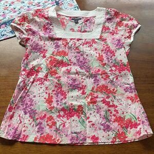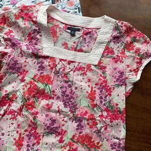 Pit to pit is 18” Never worn Vibrant summer colors with a cute square neckline and puffy sleeves