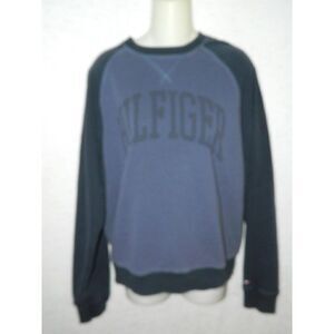 Tommy Hilfiger Navy Sweatshirt Blue Spellout Baseball Style Size Small