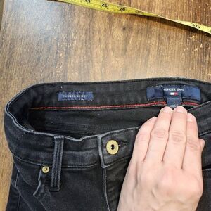 Hilfiger Jeans Tribeca Skinny black jeans with studded floral design. A minimal amout of missing studs (see up close pics) which are very hard to notice. Size women's 2 or 26". See size chart. 9" rise.