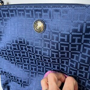 Tommy Hilfiger Women's Navy Blue Synthetic Leather Logo Print Cross Body Bag