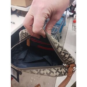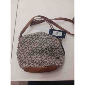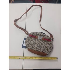 Tommy Hilfiger cross body canvas signature print adjustable strap leather trim