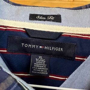 Tommy Hilfiger red multicolor plaid button down shirt size xl slim fit