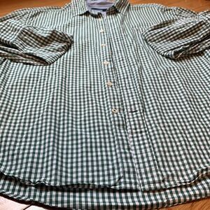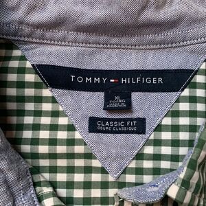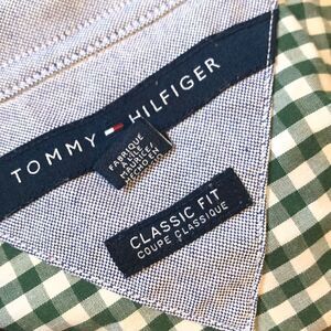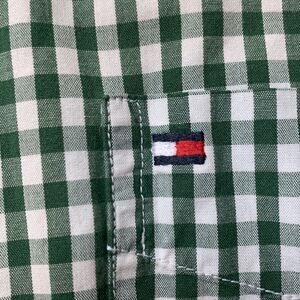 Tommy Hilfigre green + white plaid button up business casual long sleeve shirt