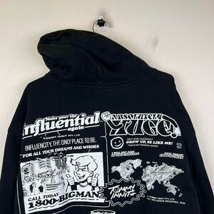 black hoodie, graphic print, oversized, skatewear, streetwear, casual hoodie, pullover, knit fabric, hooded sweatshirt, graphic hoodie