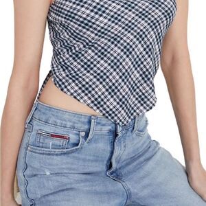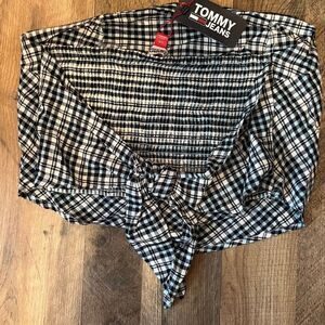 Tommy Jeans Women's Plaid Smocked Scarf Bandeau Top Blue Size Large. Measures 16.5”