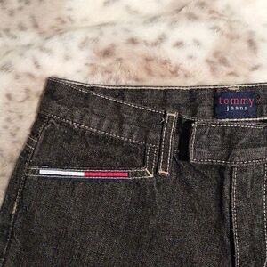 These Tommy Jeans black junior shorts are a size 3. They have a clasp and button closure. Four pockets with the right front pocket stitched with the iconic red and white Tommy Hilfiger logo. Pre-owned and in like new condition. All offers welcome.