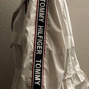 White Tommy Hilfiger lightweight windbreaker jacket with hood #windbreaker