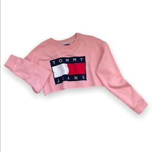 Tommy jean pink cropped crew neck sweater top