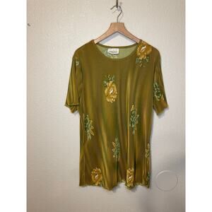 Tomorrow U.S.A. Yellow/ Gold Pleated Floral Silky Y2K Boho Pant Set XXL
