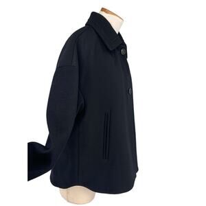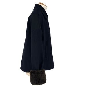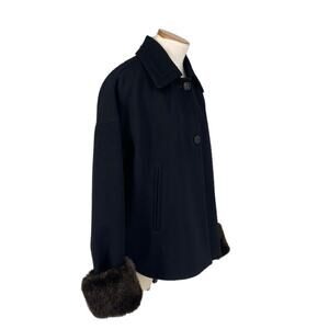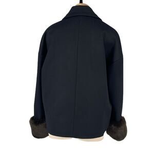 Tomorrowland Two Button Wool Blend Navy Blue Faux Fur Collar Short Coat Size 38