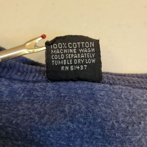 Blue on blue with white and gray graphic accents. Elasticated bottom hemline. Super cool grailed crewneck. Made in the USA. Fabric is a little coarse.