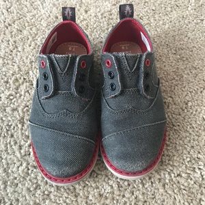 Boys Toms. 9t great condition- barely worn. Super slight wear on soles heel and toe. Velcro on tongue/ no laces needed. Super stylish-Great for dressy /casual.