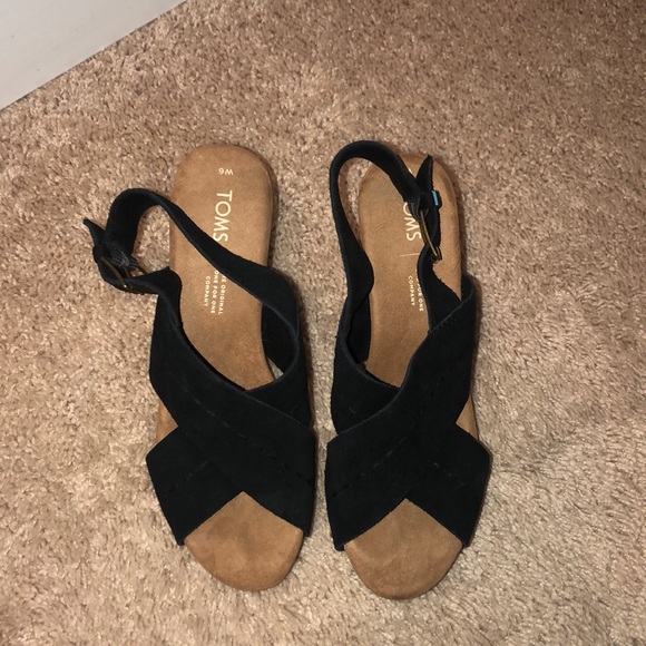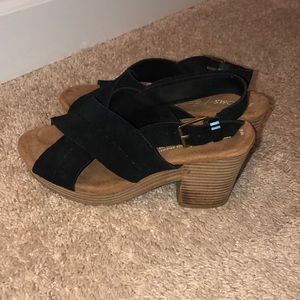 Toms heeled sandals. Only worn once for less than 1hr. Very comfy, as they have the comfort soles! Make me an offer!