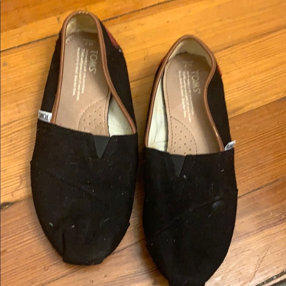 Toms, black with brown leather trim and plaid patch on the back. Gently worn just a few times .