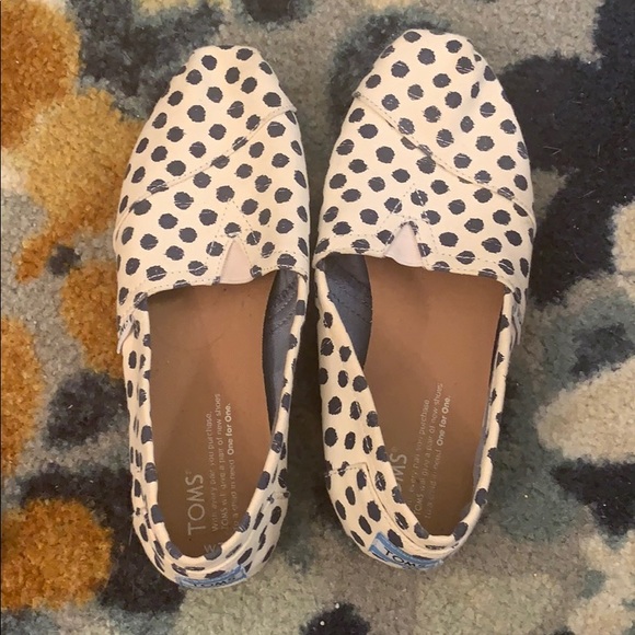 Toms flat canvas shoes, off white and navy polka dots. Worn less than 10 times. Great condition