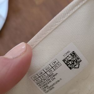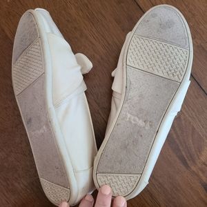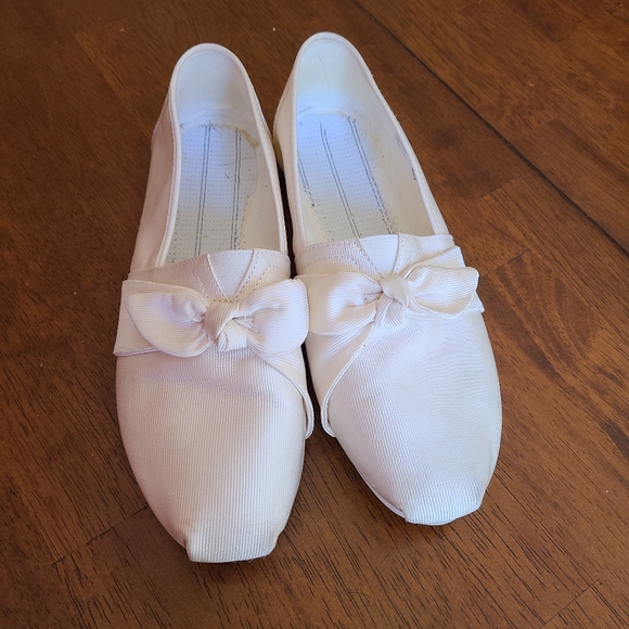 White bow Tom's. They are in prettt good condition. I wore them to the park once to take pics and they did get a few dirt stains which I assume would be easy to clean. I think I've worn maybe 3 times. But they are about a 1/2 size too small for me.