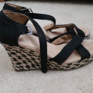 Toms Women's Wedges.. Black & Tan Woven Wedges Absolutely Beautiful... 🤎🖤🤎🖤