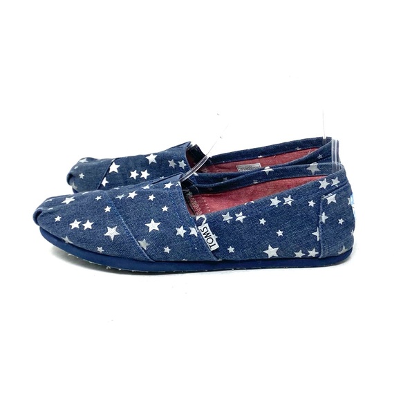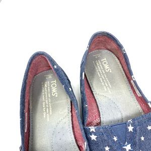 Toms denim stars slip ons. Women's size 7. A few marks and signs of wear (see photos). In good pre-owned condition. Box not included.