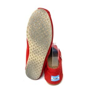 Toms red slip ons. Women's size 7. A few marks and signs of wear (see photos). In good pre-owned condition. Box not included.