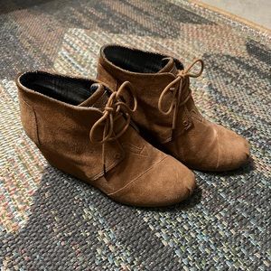 Toms ankle boots/wedge heel. Chestnut tan color. Very little wear but in excellent condition. Size 8