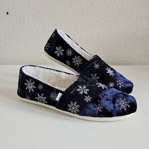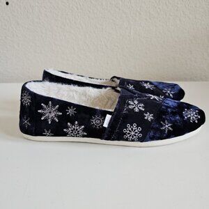 Toms Alpargata Faux Fur Cozy Velvet Embroidered Snowflake Navy Blue Slip On Flats 7.5