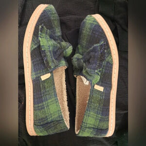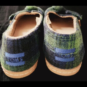 Tom's Alpargata Leather Wrap Women's Green & Blue Plaid Slip-on Sz 8W