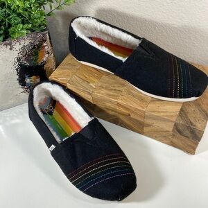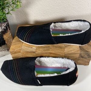 Toms Alpargata Slip On Sneaker Shoes Black Rainbow Pride Stitch Lined Size 8