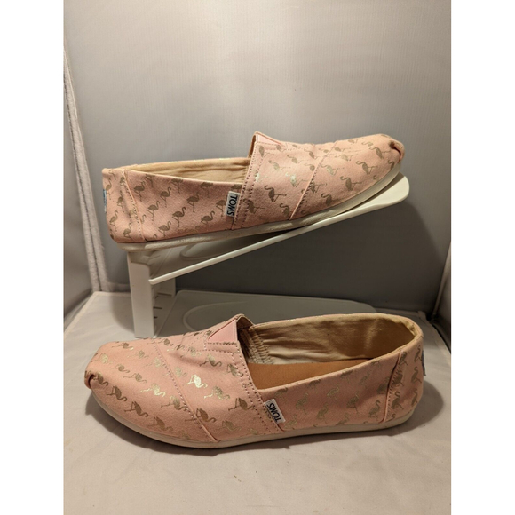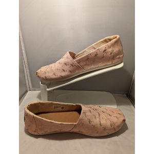 Toms Alpargata Women Size 9.5 Pink Rose Gold Foil Flamingo Flats Canvas Shoes. Not much wear on these shoes.