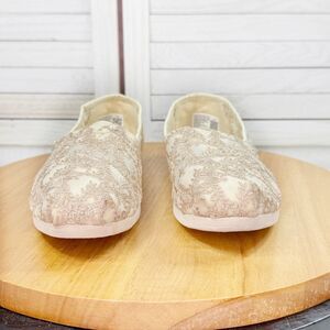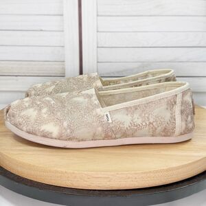 Toms Alpargata Embroidered Hibiscus Lace Slip On Shoes Ivory Metallic Tan 8.5