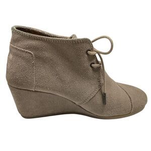 Toms Ankle Boots Womens 7.5 Gray Taupe Desert Suede Lace Up Wedge Shoes