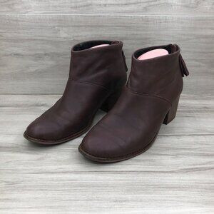 Toms Carpe Diem Leila Burgundy Leather Back Zip Ankle Boot Booties Women's Size 8.5