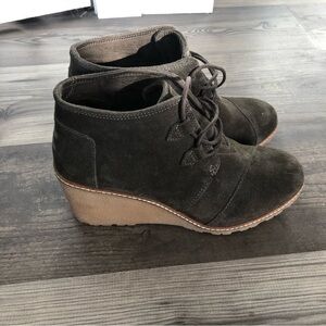 Toms Ankle Suede Wedge Lace Up Boots 8.5 Brown