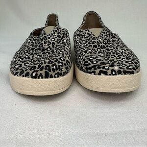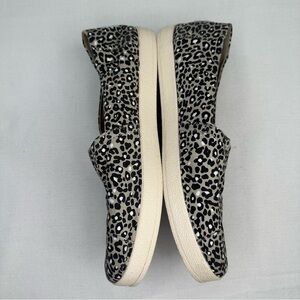 Toms Avalon Leopard Print Canvas Slip On Shoe 9 Black Tan