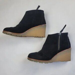 Toms Avery Black Suede Wedge Ankle Boots - Stylish Comfort Booties for Women