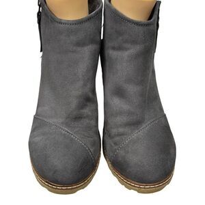 Toms Avery Gray Fabric Zip Mid Wedge Ankle Bootie Womens Size 9.5 M