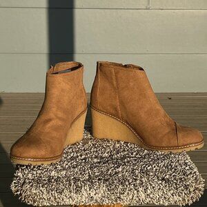 Toms Avery Wedge Women Brown Side Zip Bootie Wedge Heel Side Zip Size 10